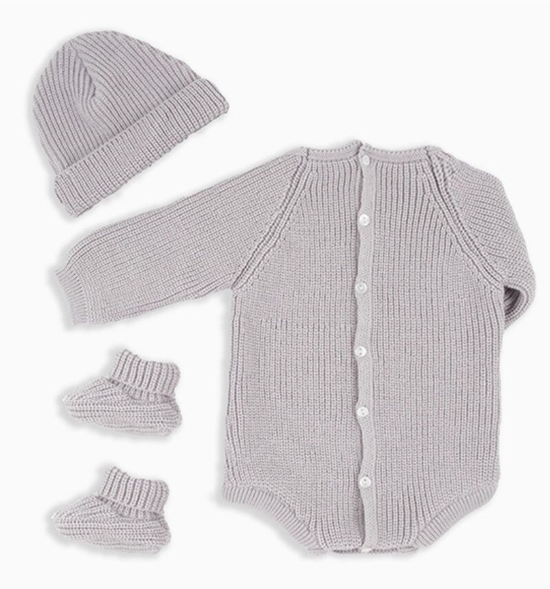 Deze meest comfortabele romper bestaat uit drie essentiële onderdelen: een romper met lange mouwen, een bijpassende muts en schattige kousjes. Gemaakt van een zachte mix van 50% wol en 50% acryl, zorgt het voor comfort en warmte, met een onberispelijk ontwerp dat het perfect maakt voor elke gelegenheid. Je baby zal altijd modieus en comfortabel zijn! Ook beschikbaar in het roze.